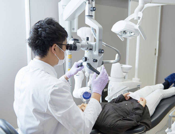 当院では、肉眼の約25倍視野を拡大できるマイクロスコープを用いて根管内を拡大し、今まで見えなかった細部まできっちりと確認することで、より精度の高い治療を行ってまいります。